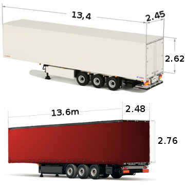 W naszej flocie posiadamy samochody ciężarowe z naczepami typu Chłodnia / Plandeka (burto-firanka). Wewnętrzne wymiary naszych naczep: